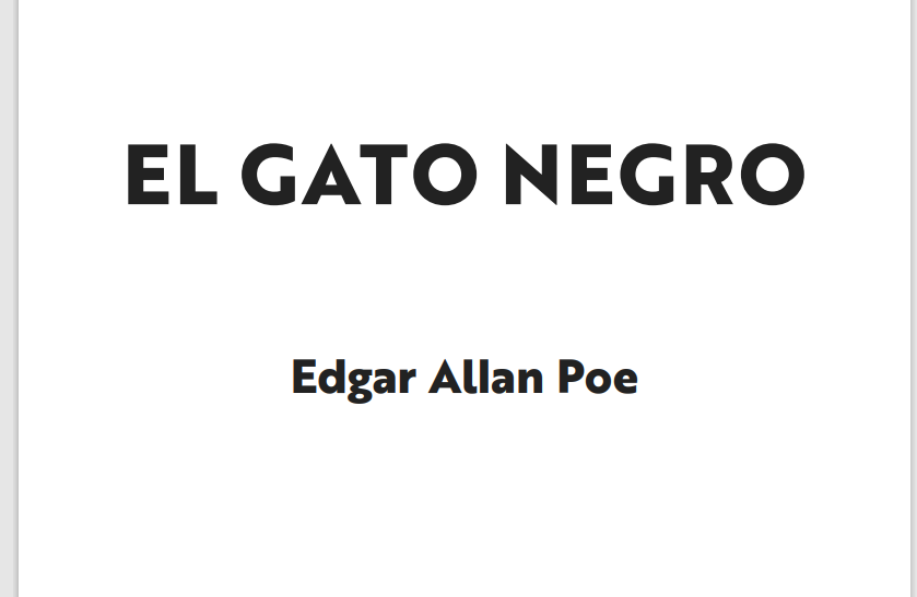El Gato Negro es uno de los cuentos de horror más populares de Edgar Allan Poe, publicado en 1843. La crítica literaria ha catalogado esta historia como una de las más espeluznantes que se hayan escrito en el mundo. Un gato negro ocupa la escena principal, junto con el protagonista, un hombre que parece bondadoso y pacífico, pero que cae terriblemente en el vicio del alcohol. La violencia, la muerte y la culpa son temas que se entrelazan en esta obra maestra, dejando sin aliento a cualquier alma que la lea